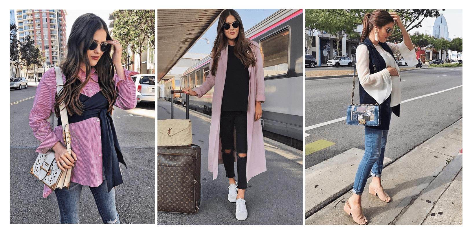На этих фото показана комфортная одежда для беременных на ранних сроках: