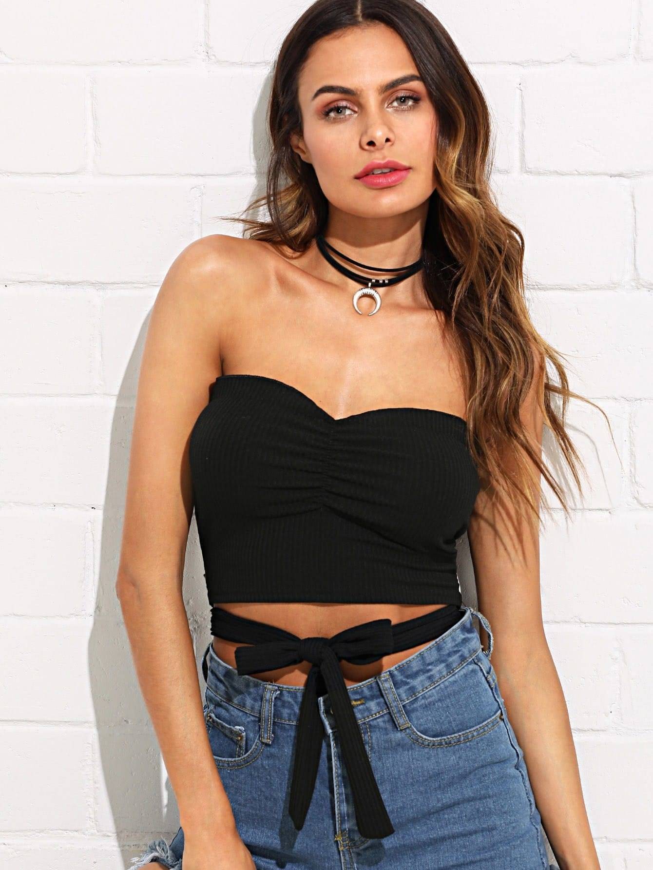 - В кармашек с резинкой продевается шнурок. Благодаря этому топ можно будет подвергать регулировке.
