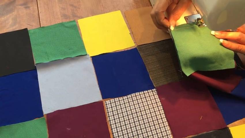 Нарезая лоскуты, надо учитывать метод шитья: руками или на машинке. В первом случае можно делать элементы любого размера. Если куски ткани прострачивают на швейной машинке, не делают слишком маленькие фрагменты, поскольку их неудобно сшивать.