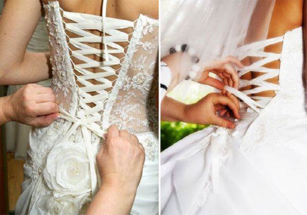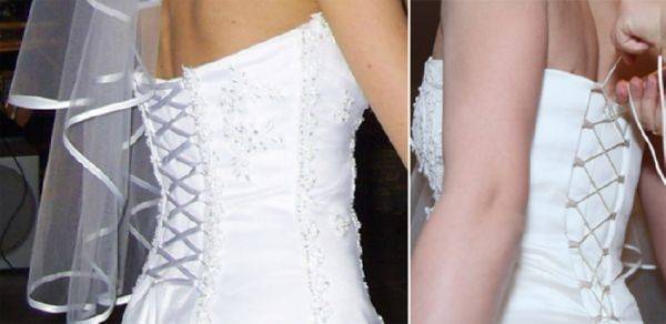 Причем неважно, дополнена ли модель пышной или прямой юбкой. Способ шнуровки всегда один. Если сделать все правильно, то удастся избежать провисания ленты