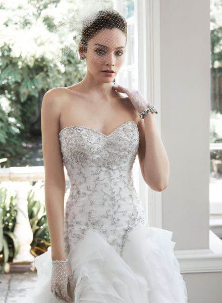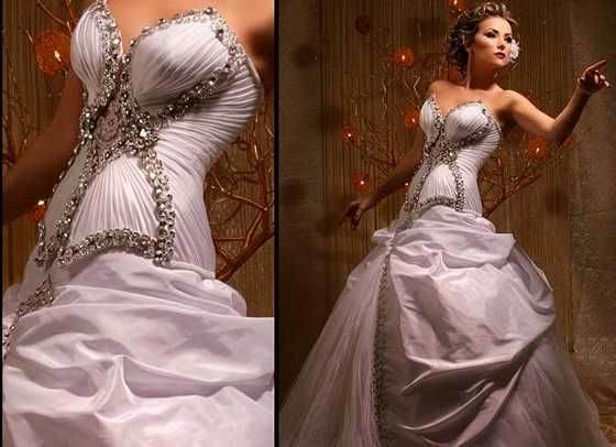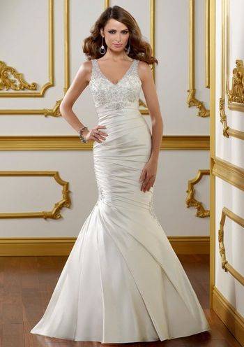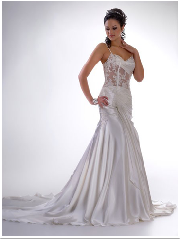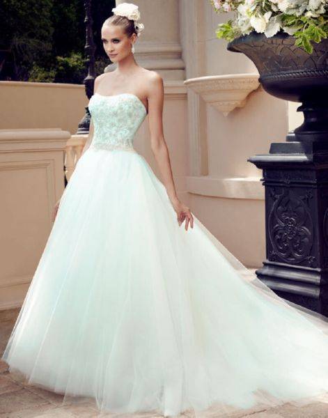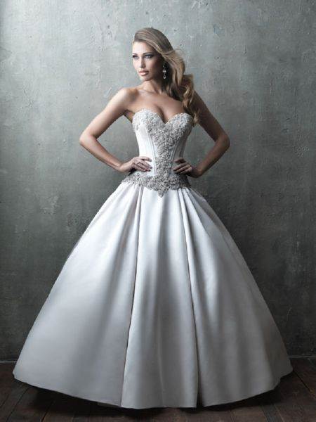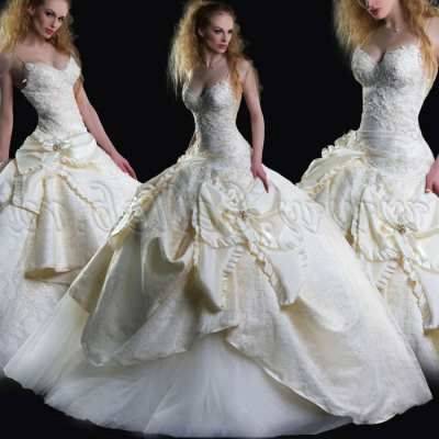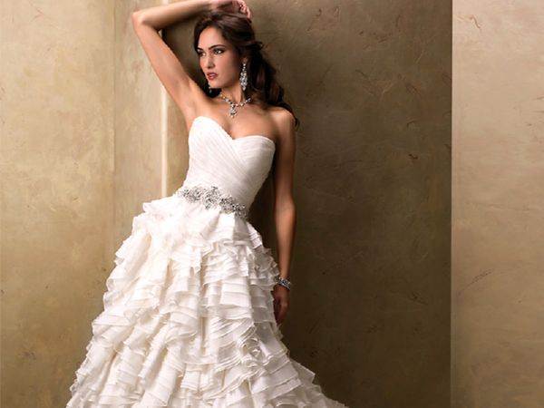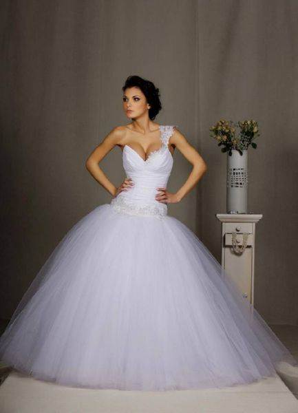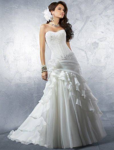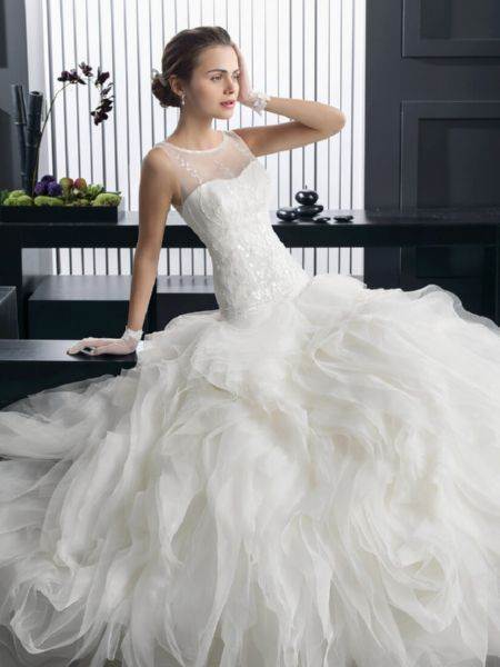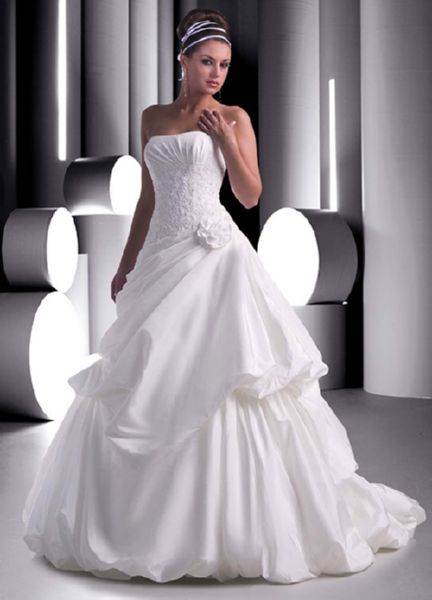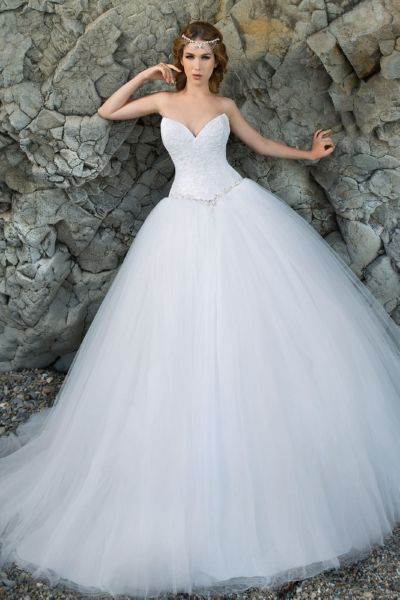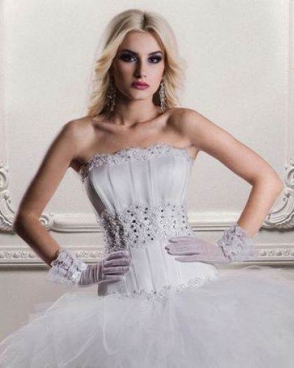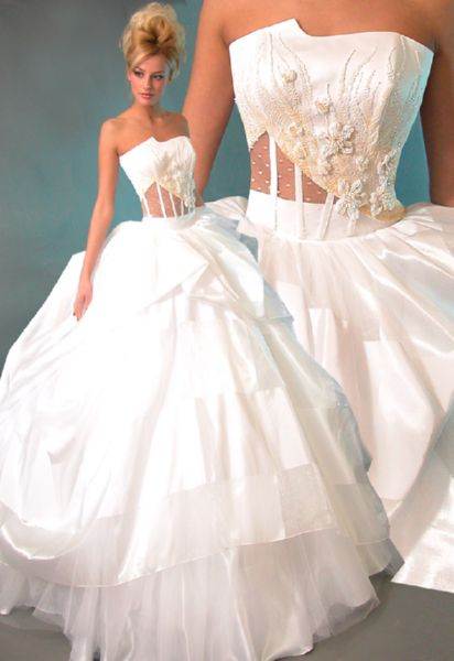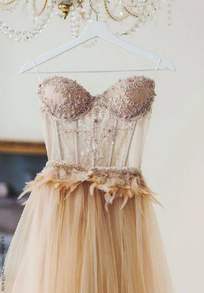 Это модели торжественных платьев, например свадебных, сочетаются с пышным низом. Для невест с небольшой грудью такой фасон подчеркнет зону декольте.