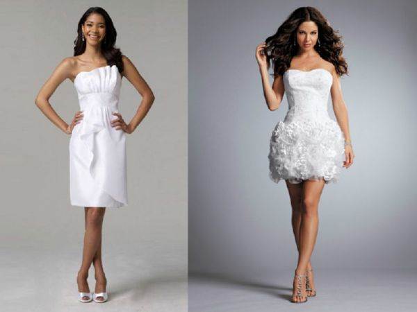 Подчеркивают красоту стройных ног, поэтому подойдут девушкам худого телосложения, создавая правильные пропорции. Для этого фасона гармонично сочетается как платье с корсетом и пышной юбкой, так и вариант с узкой юбкой.