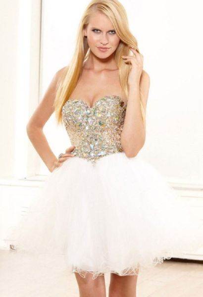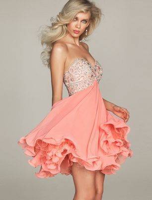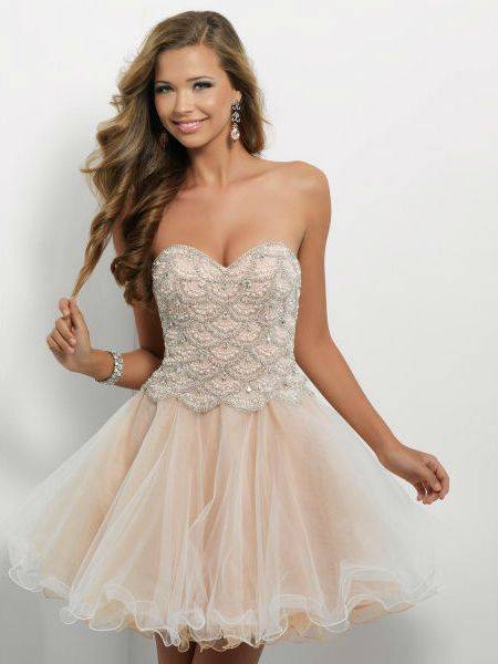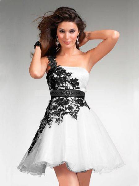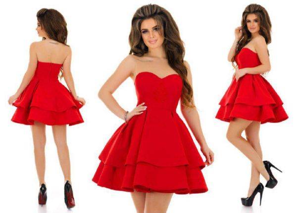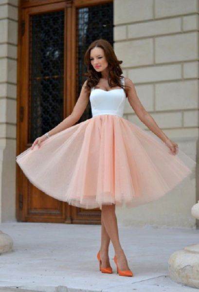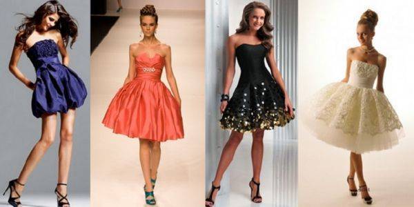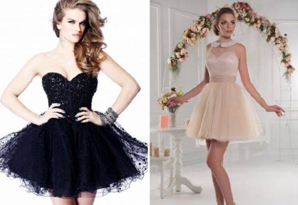 Эффектно смотрятся наряды с пышной короткой юбочкой.Платье позволяет подчеркнуть стройные ножки, акцентировать на них внимание окружающих. Обладательницам полных ног лучше отказаться от обсуждаемого фасона