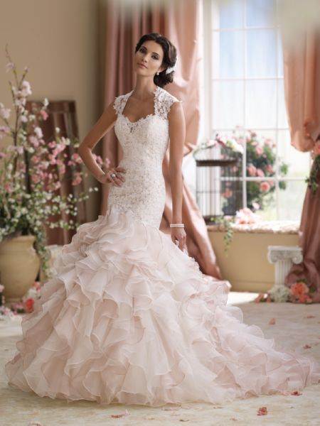 Для девушек, ищущих наряд для свадебной церемонии, идеальными считаются светлые цвета. Причем, белый – не единственный вариант. Подчеркнуть нежность, чистоту, элегантность невесты можно изделием бежевого, нежно-розового, кремового оттенка. Такие модели не нуждаются в излишнем декоре, ведь они призваны делать образ воздушным.