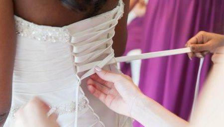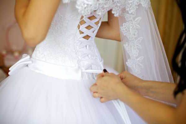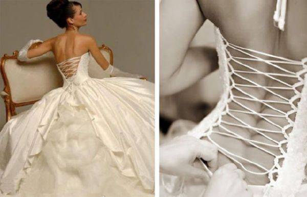 Девушки часто покупают платья с корсетом для церемонии бракосочетания. Наряд невесты может быть классическим: с пышной длинной юбкой и плотным корсетом, изысканно подчеркивающим линию талии, делающим ее тонкой. Выигрышно смотрится приталенный вариант.