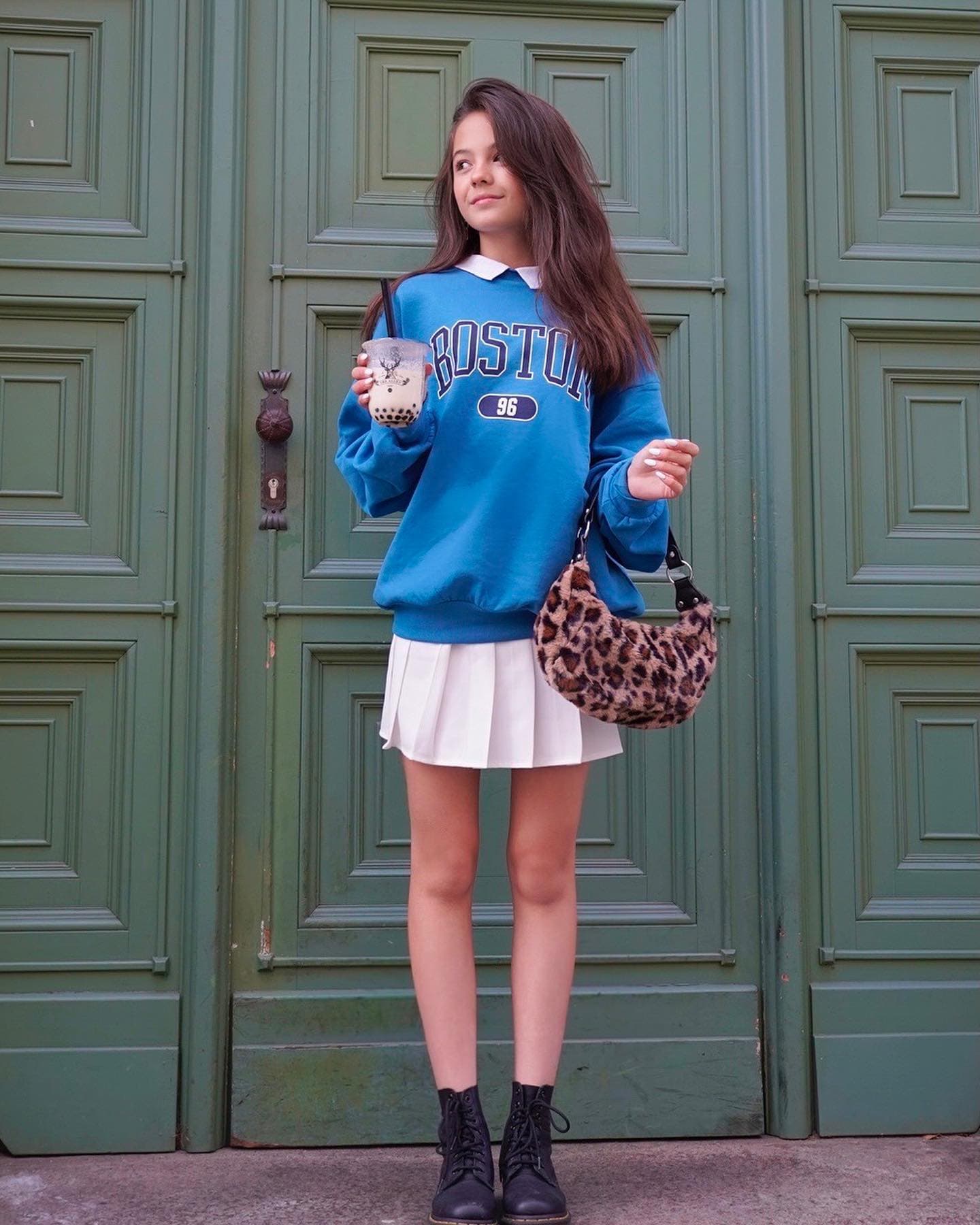 Из вещей подростку обязательно нужна как минимум одна толстовка — объемная, широкая, в стиле oversize. Сегодня в моде ретро-принты вроде логотипов известных университетов. Толстовка — универсальная вещь, которая поможет модно одеваться в как в 11-13 лет, так и старше. Ее можно комбинировать со спортивными брюками, джинсами и даже шортами.