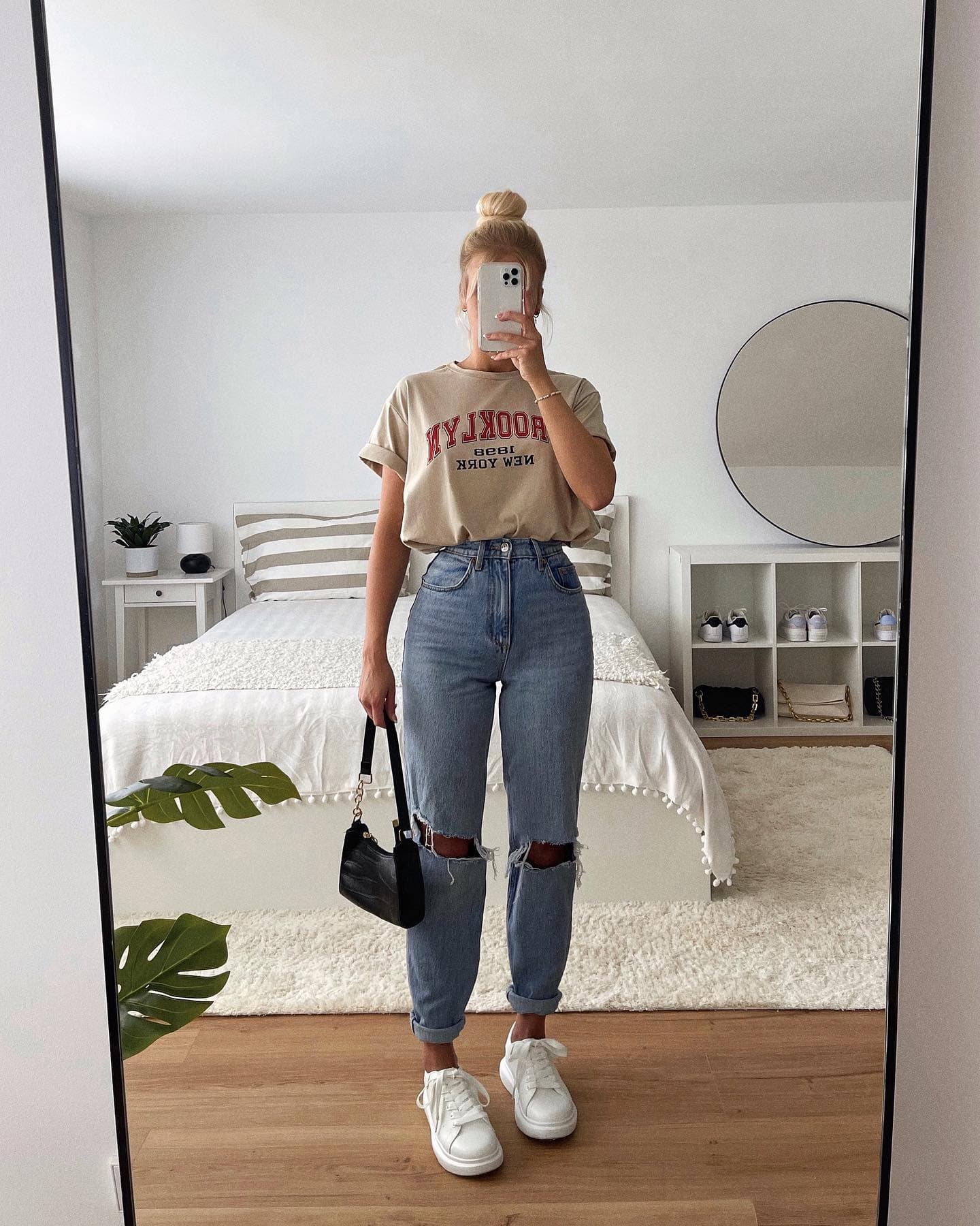 Классическое сочетание футболки, голубых джинсов и светлого джемпера с V-образным вырезом известно всем. Попробуйте новые образы, которые предлагают в этом сезоне стилисты.