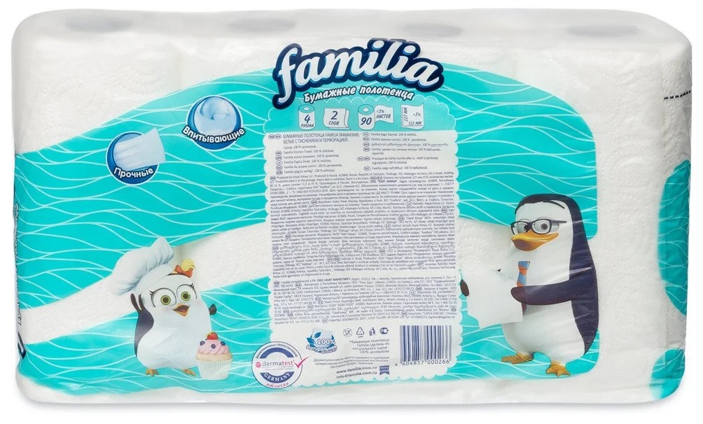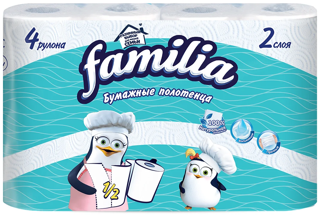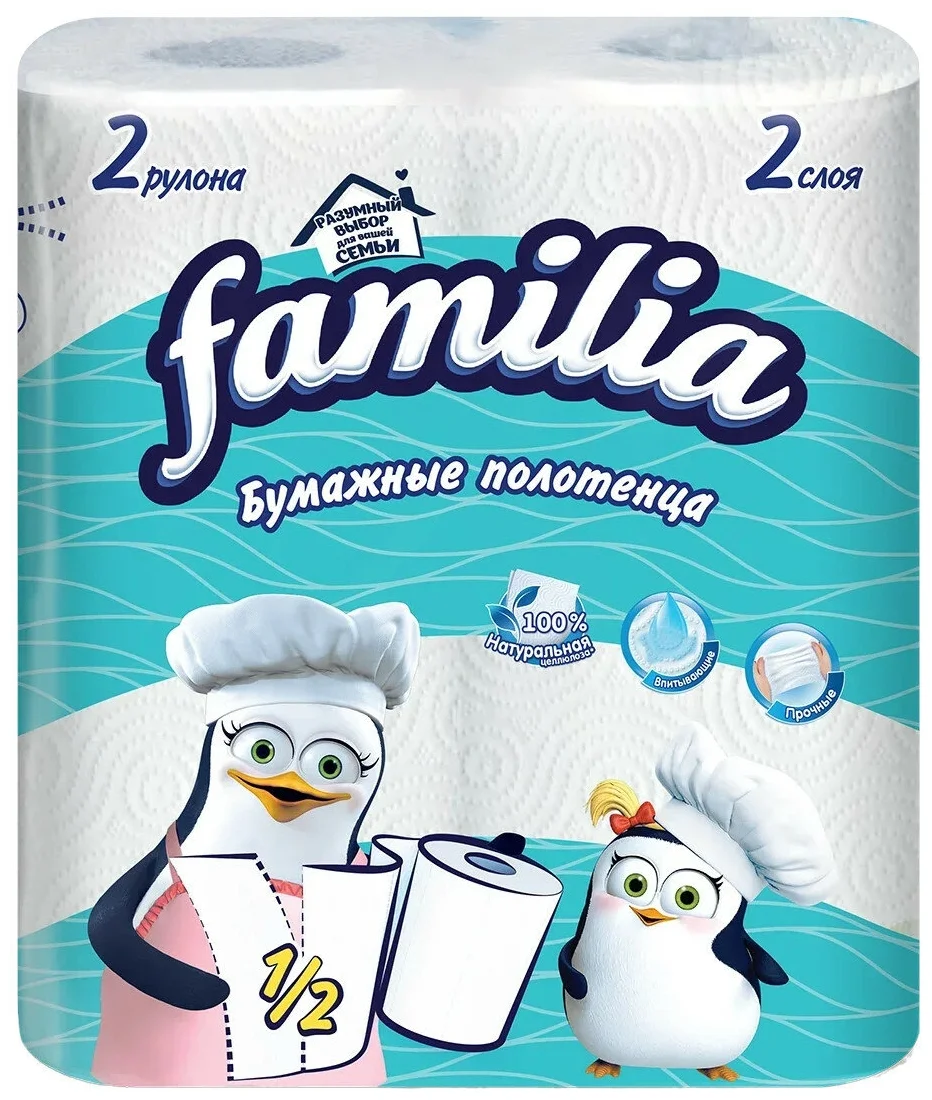 Качественные бумажные полотенца, довольно прочные. Не расползаются, от них нет бумажной пыли, хороши при натирании стеклянной и хрустальной посуды, металлических и каменных поверхностей, не оставляют ворсинок. Можно использовать для обсушивания мяса и рыбы перед приготовлением, выкладывать обжаренные продукты для впитывания масла и т.д.