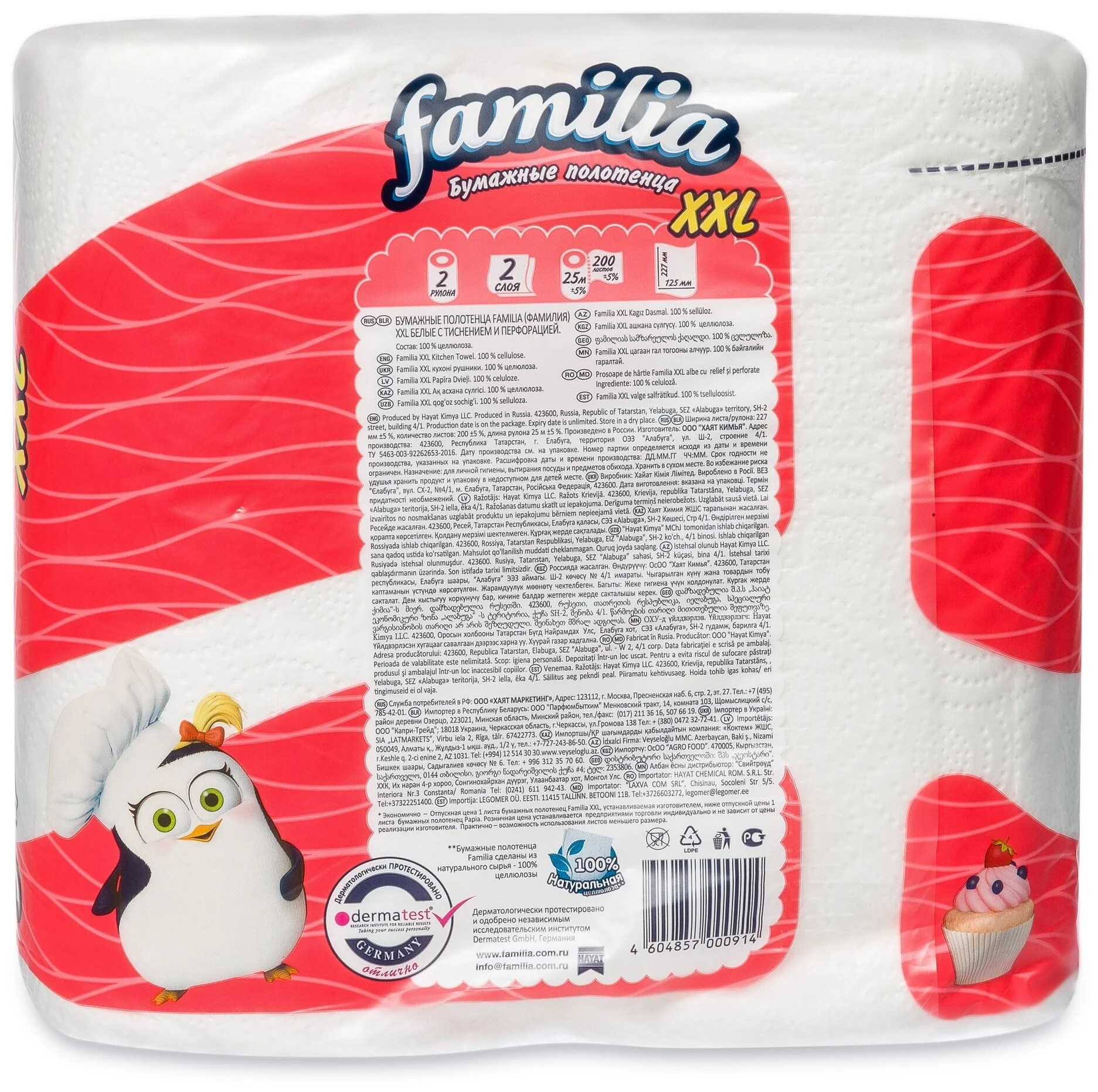 заказала эту бабину пришли полотенца больших размеров, упаковка большая, салфетки впитывают хорошо, перфорация на небольшие листы, удобно. Хватит на долго!