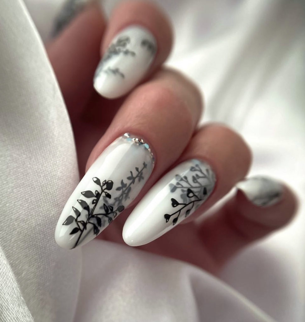 Неоспоримая всесезонная классика — белый маникюр. Это чистота, женственность и так по-зимнему. Если не хотите делать плотный белый, отдайте предпочтение молочному лаку. Такая база смотрится очень по-зимнему, а для маникюра можно выбрать практически любой вариант дизайна.