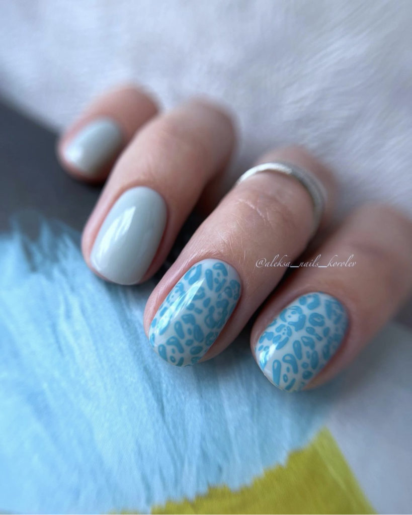 Мода на приглушенные цвета находит свое отражение в маникюре. Среди самых модных приглушенных цветов сезона: холодный серо-голубой, приглушенный сиреневый, розовый и серо-синий.