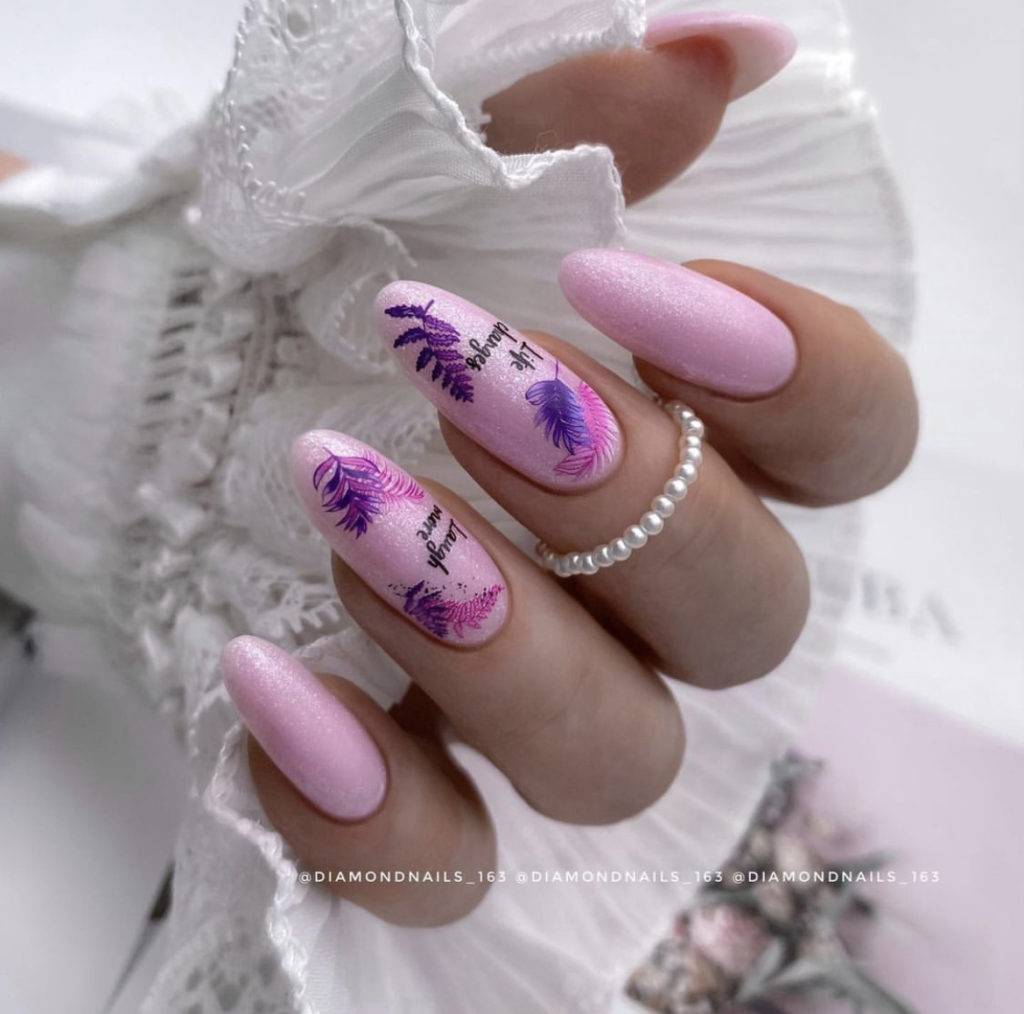 Самый яркий тренд маникюра — ногти, напоминающие сахарную глазурь. Это разновидность втирки, которая делается на светлый лак. Тренд на «глазированные» ногти начала Хейли Бибер, делая такой маникюр несколько месяцев подряд. Маникюр стал вирусным на тик-токе и приобрел мировую популярность. Такой маникюр смотрится красиво на ногтях любой формы и длины.