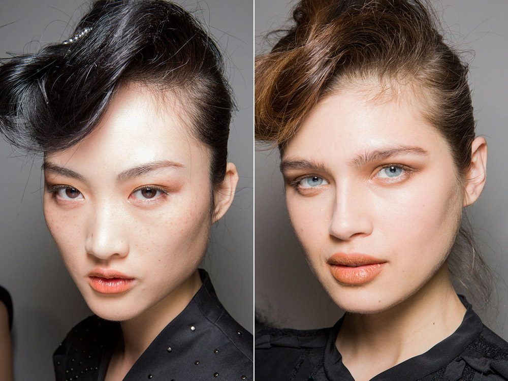 Допускается легкий румянец «как будто с мороза». Брови должны быть ухоженными, густыми, текстурированными, но уже не яркими и не графичными, как раньше. На губах — помады натуральных бежево-розовых тонов. Ресницы просто завиты, без слоев туши. Как все это выглядит можно понять, рассмотрев моделей Alberto Ferretti, Jil Sander, Bottega Veneta, Bluemarine. В целом это лаконичный, удобный повседневный образ, не лишенный женственности. Новая классика — так и запишите.