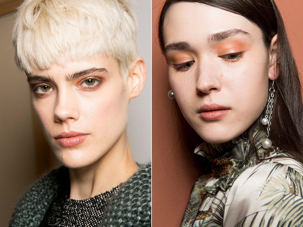 Если в прошлом году коричневая палитра теней была представлена бронзовыми и медными оттенками, то в сезоне осень-зима 2019-2020 коричневый становится матовым и полупрозрачным.