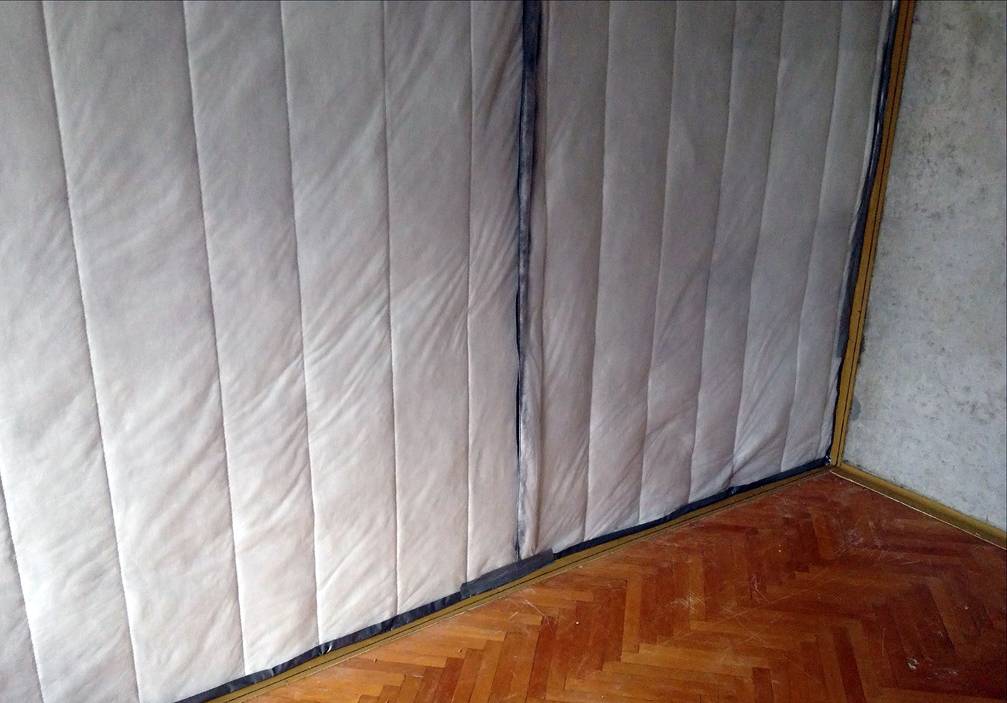 Затем используют специальную звукопоглощающую мембрану, приклеив ее к поверхности стены.