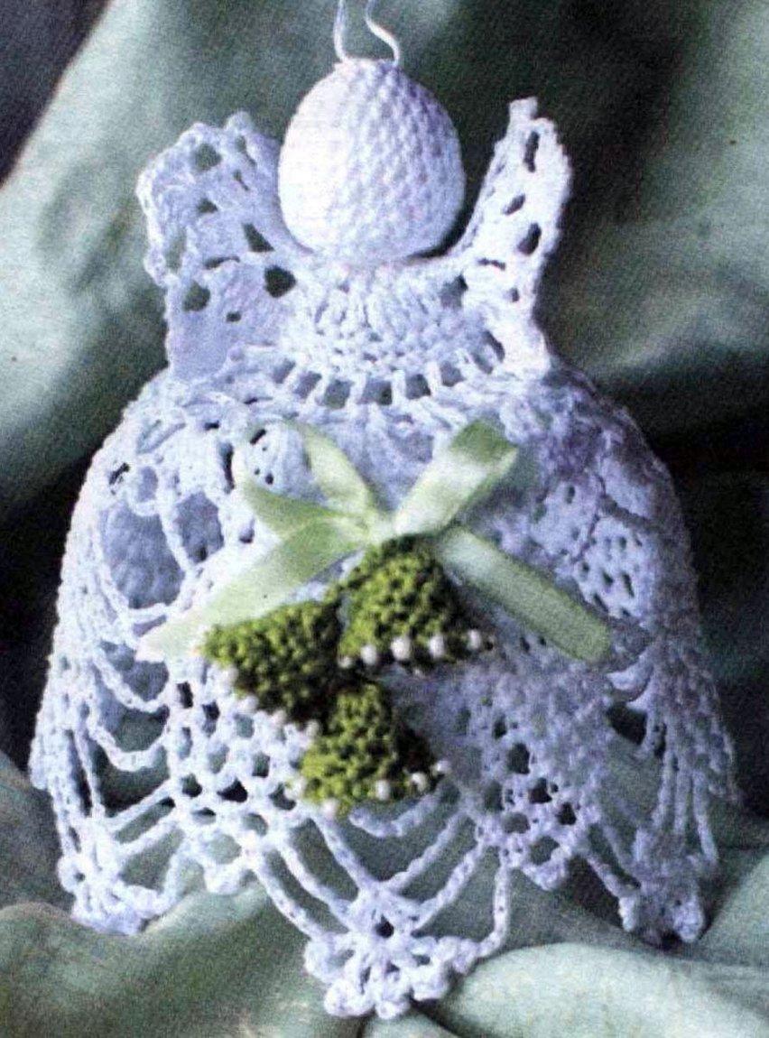 Отличную елочную игрушку можно сделать, связав ангела в виде колокольчика