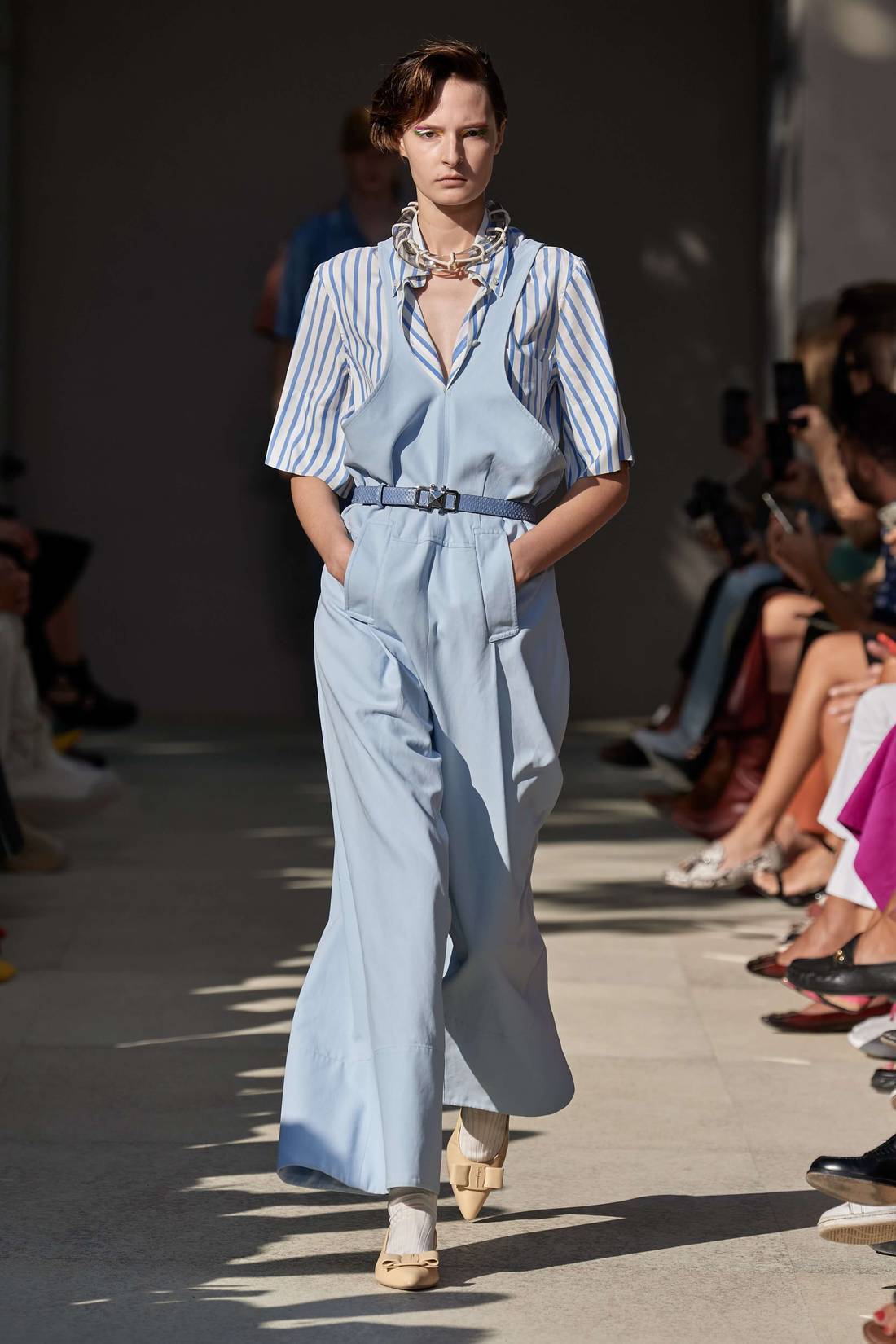 Salvatore Ferragamo отдал предпочтение морской тематике. В коллекции дизайнера присутствуют костюмы, украшенные матросскими мотивами. Есть костюмы в полоску.