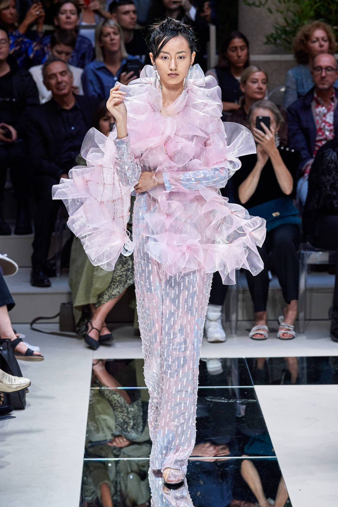 Джорджо Армани предложил модницам жакеты с нестандартными пропорциями, большими бантами и французскими манжетами.