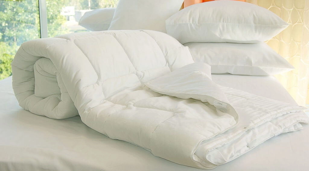 Одеяло из холлофайбера. Стоит отметить что наполнитель таких одеял – 100% синтетика. При этом, одеяла из холлофайбера гипоаллергенны, они отличаются прекрасной теплопроводностью, не создают под собой парникового эффекта, за ними очень легко ухаживать и легко хранить. Такие изделия лёгкие и пышные – в целом, это один из самых главных конкурентов бамбуковых одеял. Однако преимущество последних состоит в натуральности – естественное природное сырье более экологично и полезно для здоровья человека.