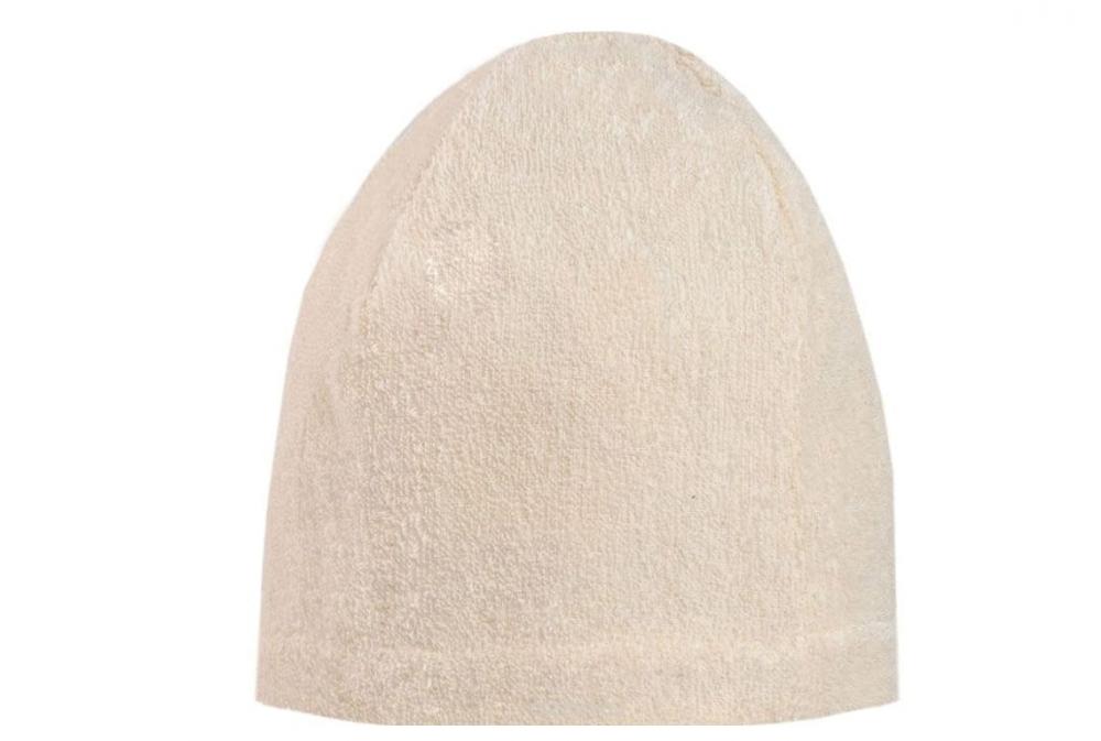 Банную шапку лучше примерять при покупке. Она должна без труда закрыть весь затылок и уши. Именно в этой части головы испарение происходит сильнее всего. Передний край выступает вперед над глазами, чем защищает их от попадания пара. Волосы полностью входят под купол предмета, не вылезают наружу.