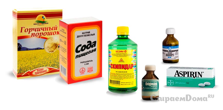 - Горчичный порошок. 400 г растворить в 5 л воды, замочить белье на пару часов. Потом постирать в той же воде с горчицей или с подходящим моющим средством.