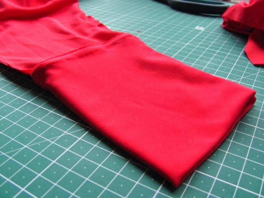 Чтобы сделать наряд из трикотажа или стрейча своими руками, используются иголки с округлым (не острым!) кончиком и маленьким ушком. Особенность закруглённых игл в том, что они не прокалывают ткань, а как бы «раздвигают» нити материи. Скрепляются детали обычным строчным швом с очень маленькими стежками, которые хорошо растягиваются.