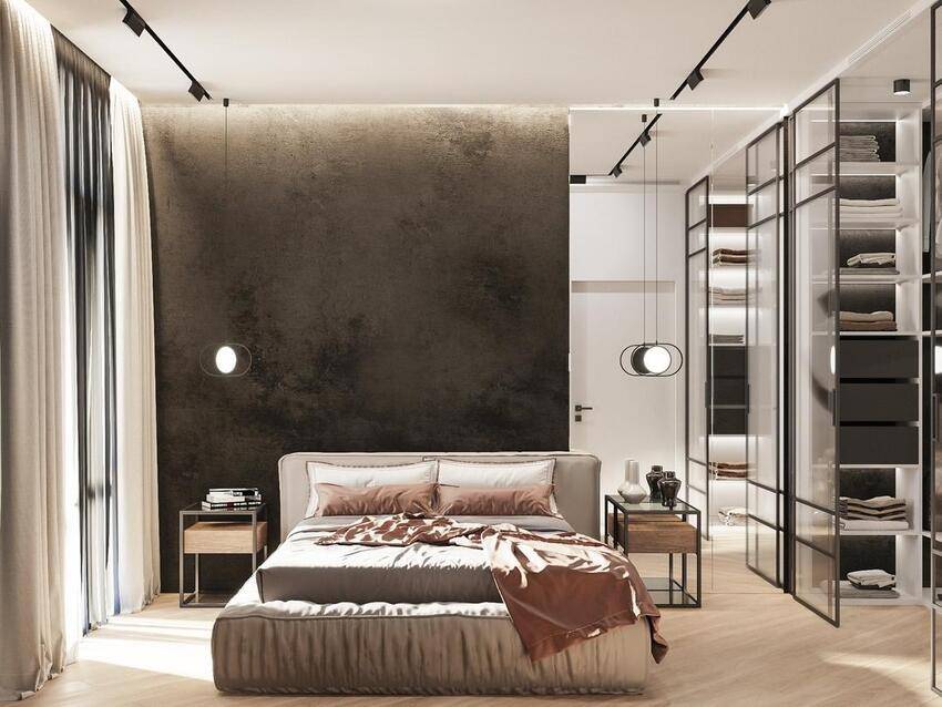 - Светлые поверхности будут отражать свет, наполняя им комнату и делая ее воздушной и просторной. Контрастные темные будут эффектно выделять акценты и придавать спальне глубину.