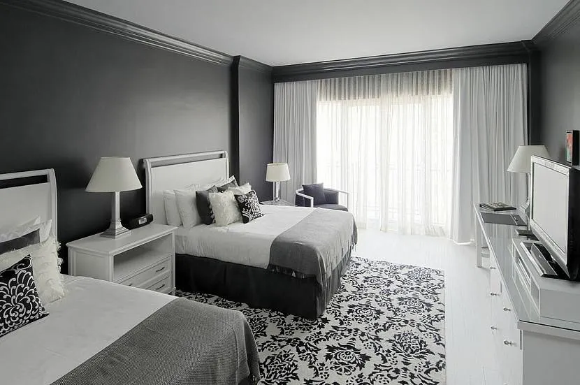 Черно-белую комнату можно дополнить другими цветами. Он может быть синим, красным или зеленым. Но не стоит перенасыщать комнату этими оттенками. Таким образом, идея использования двух цветов не будет использоваться, как предполагалось ранее.