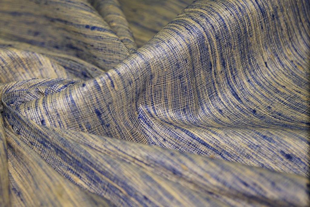 Удивительный материал с неоднородной фактурой, за счет того, что нити имеют разную толщину В производстве используют пряжу, полученную от дикого шелкопряда — тусса. Полотно прочное, мягкое, хорошо драпируется, но требует деликатного ухода. Используют при пошиве портьер, одежды.