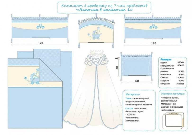 Таблица размеров для пододеяльника колеблется в пределах от 110х140 до 125×150, простыня от 100х140 до 130×160, наволочки тоже маленькие от 25х30 до 40×60.