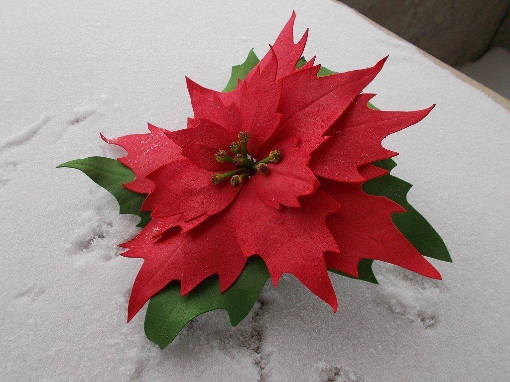 Листья фиксируются сзади пуансетии и крепятся к основе.