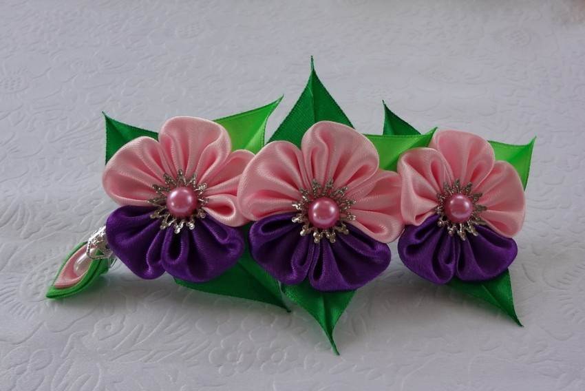 - оплавленные лепестки выглядят менее аккуратно, по сравнению с канзаши, поэтому не стоит использовать эти цветы рядом со строгим нарядом;
