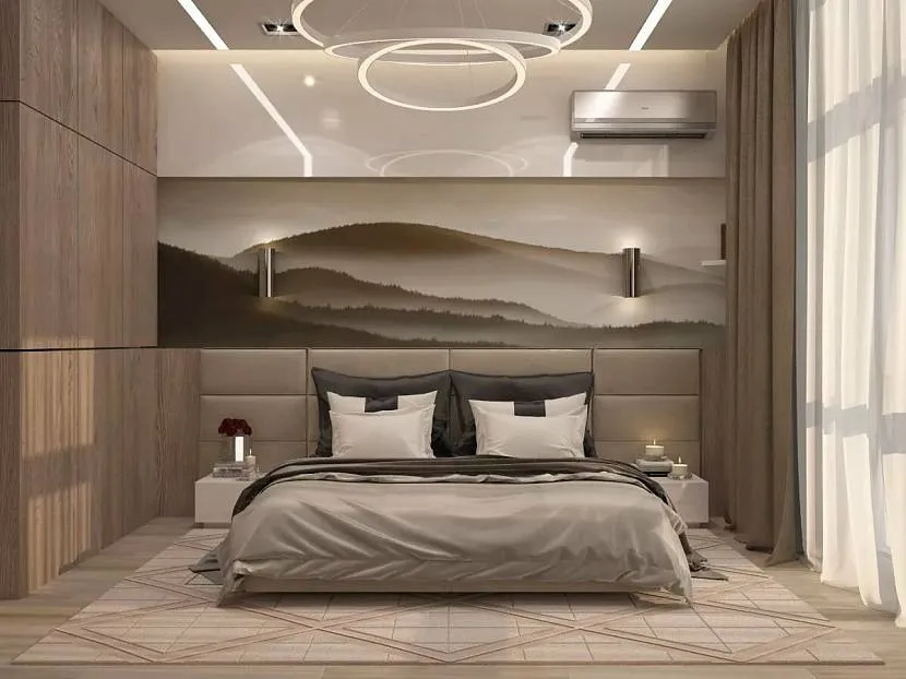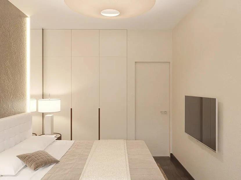 Бежевая спальня с интерьерным направлением модернИсточник uiut.boltai.com