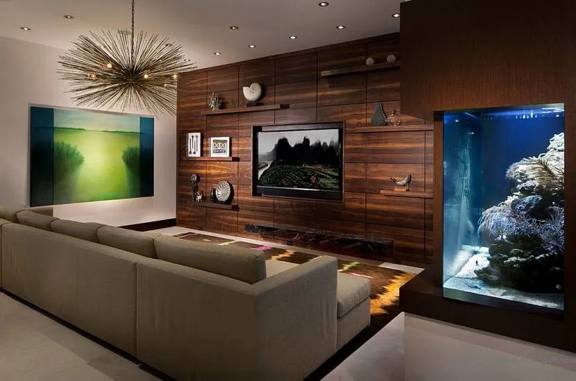 Помимо сочетаний оформления комнаты отдыха в коричнево-бежевых красках прекрасно будут смотреться и комбинации со светлыми голубыми и изумрудными тонами.