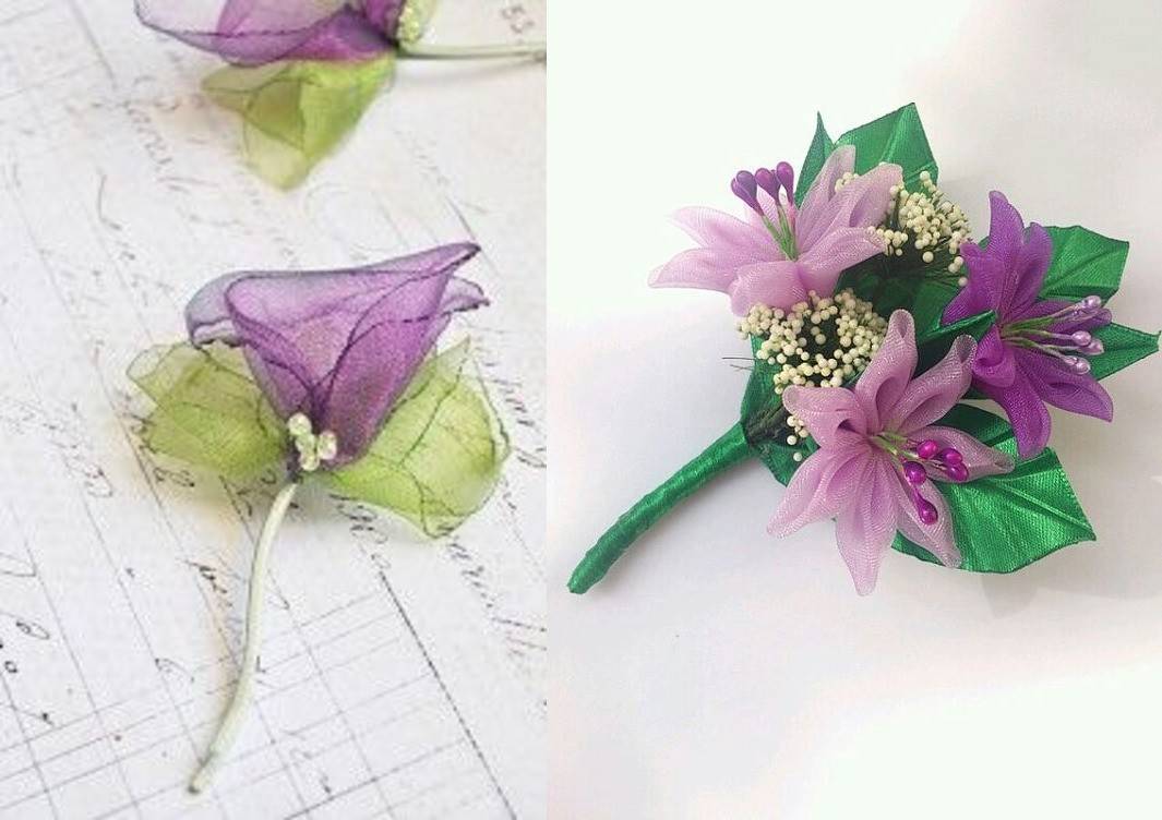 Из органзы получаются чудесные искусственные цветы, которыми можно украсить интерьер , приколоть на свадебное или вечерние платье, заколку для волос и т.д.