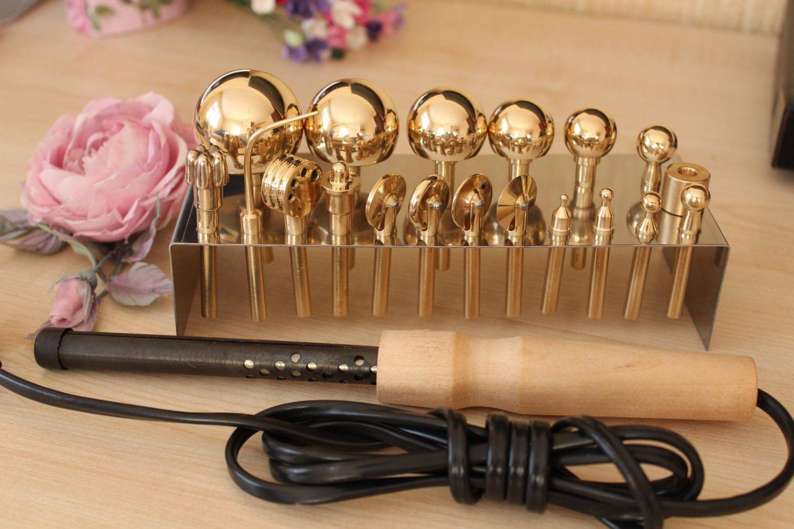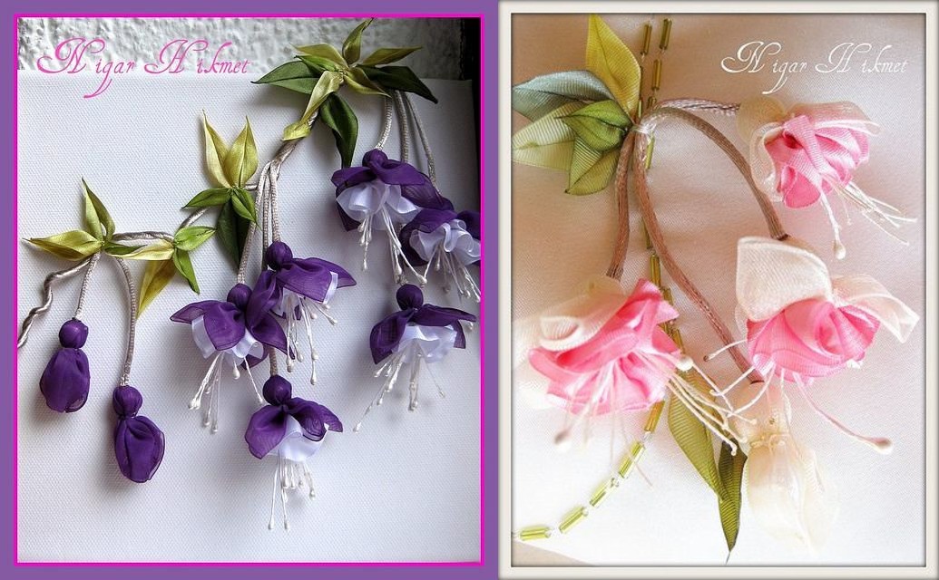 Этот прием называют шелковой флористикой или японской техникой. Древнее искусство создания цветов из шелка пришло из Японии. Однако оно применимо и к другим тканям: вискозе, батисту, органзе. Для изготовления цветов потребуется паяльник и набор специальных латунных инструментов на ручке. В него входят круглые шары различных диаметров – бульки, а также гладилки, ножи, пяточки, крючки, фильеры и специальные инструменты для хризантем, ландышей и фантазийных цветов.