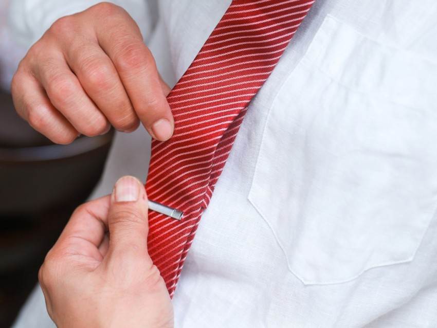 Зажим нужен фасону из тонкой ткани, чтобы галстук не скользил, не елозил по рубахе. Необходим он и длинным моделям, когда, к примеру, запланирован обед: без должной фиксации кончик галстука может оказаться в тарелке.