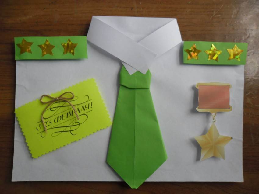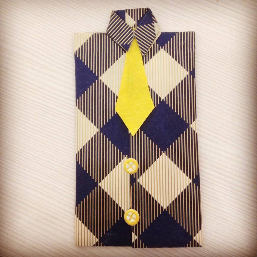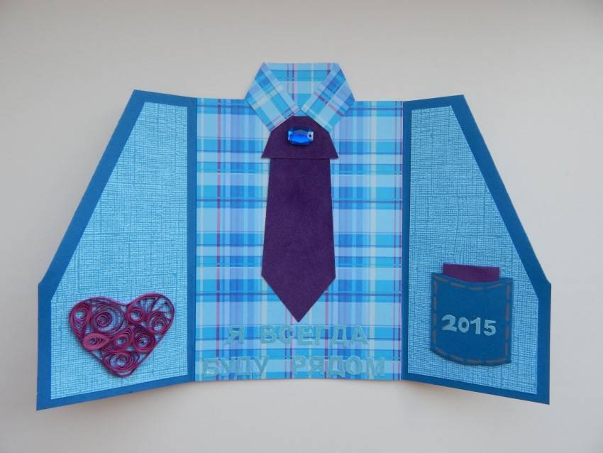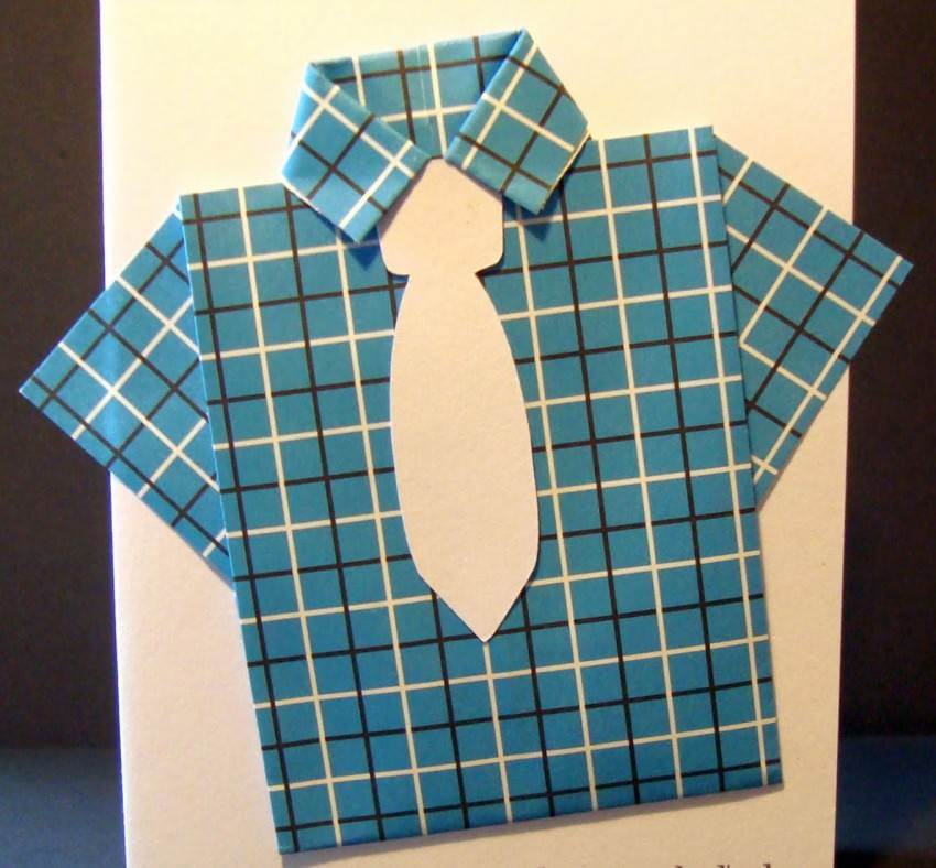 Очень хорошим заменителем подарка-галстука станет оригинальная открытка в виде рубашечки с галстуком, которая также очень просто изготавливается.