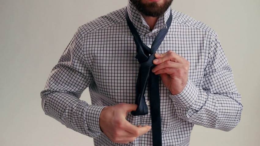 Важно, чтобы это несовмещение было симметричным по обоим краям галстука