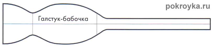 Галстук-бабочку можно выполнить из цветного шелка (если ткань тонкая, галстук выполняется с прокладкой). Показанный ниже чертеж можно использовать для изготовления галстука-бабочки для фрака из белого пике или бабочки для смокинга из шелковой ткани, идентичной ткани на лацканах смокинга.