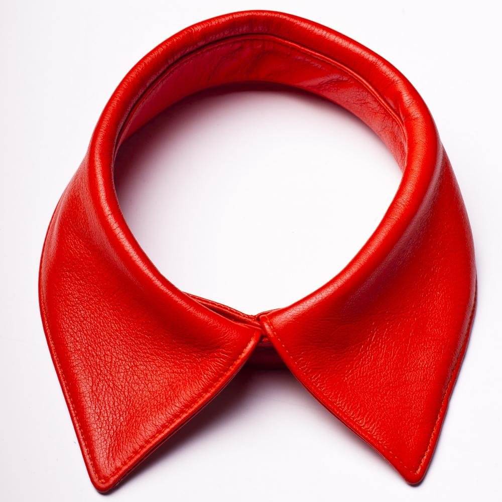 Из плотных тканей или кожи делают ультрамодные и стильные воротники-стойки. Они напоминают ворот мужской рубашки и, кстати, именно таким образом их можно сделать своими руками. Отличительная особенность такого воротника — острые углы.