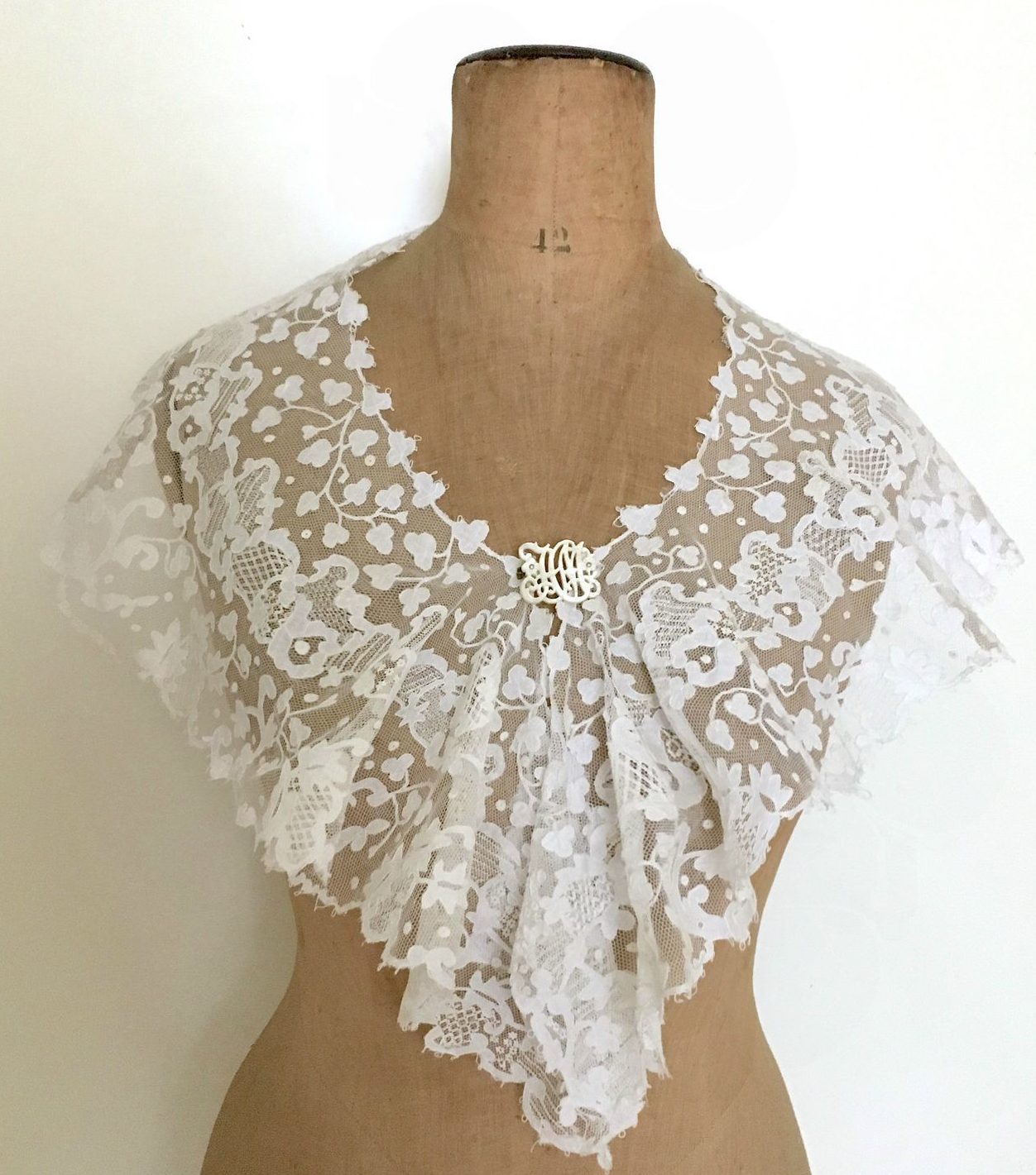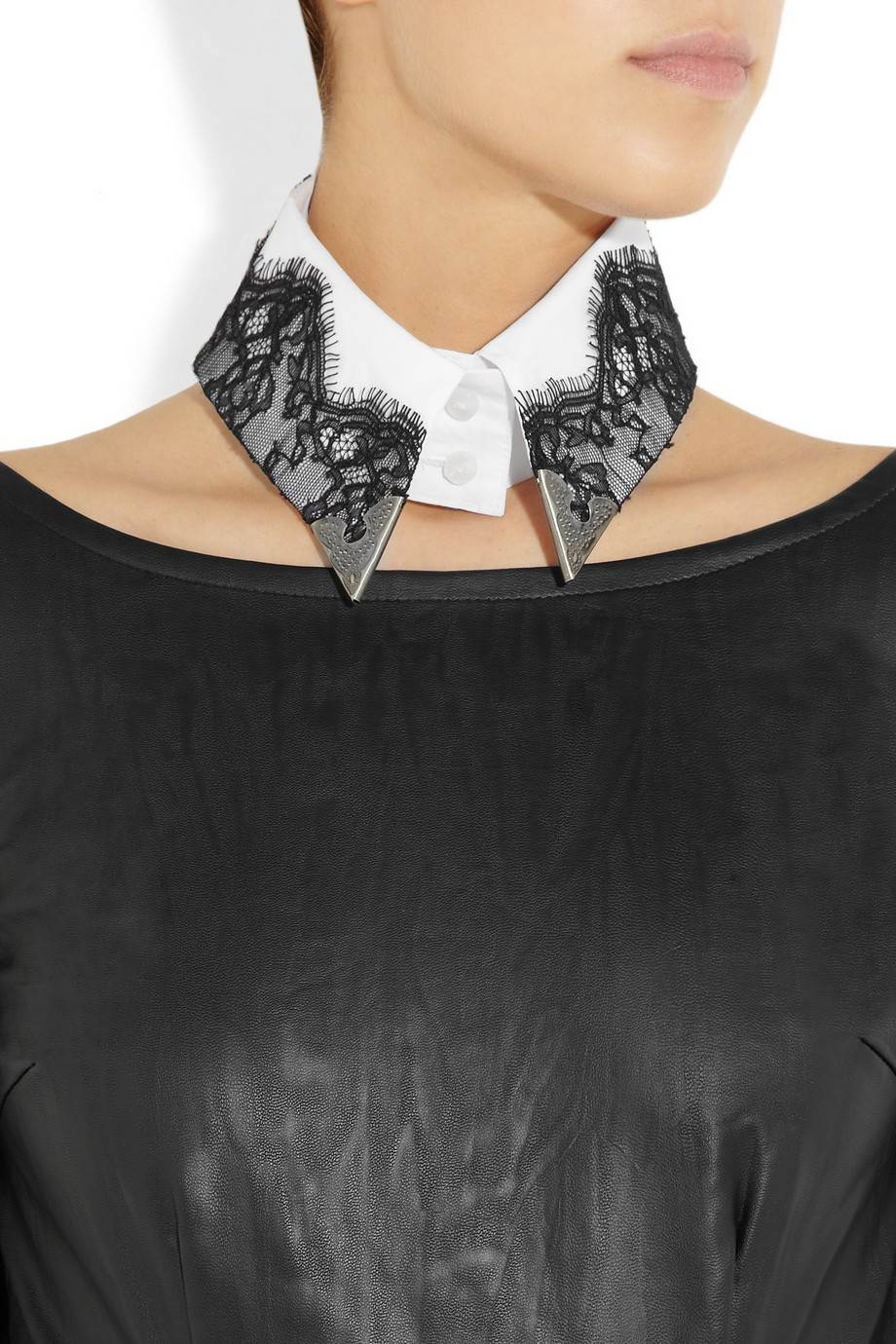 Эффектный кружевной воротник большого размера органично дополнит простую белую блузу и добавит больше лоска образу. Визуально он подчеркивает плечи и делает акцент на их хрупкости. Это женственный и нежный аксессуар.