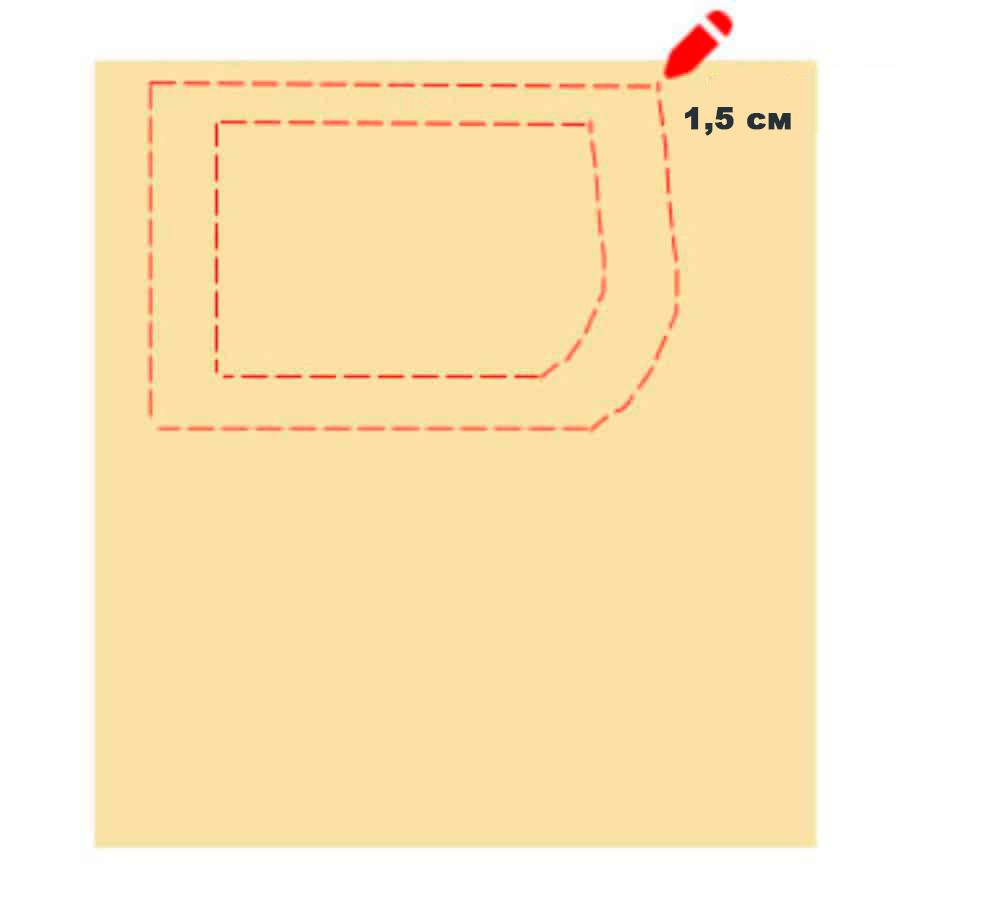 Добавляем вокруг кусочка по 2,5 см вверху и по бокам и 5 см внизу нашей приколотой ткани.
