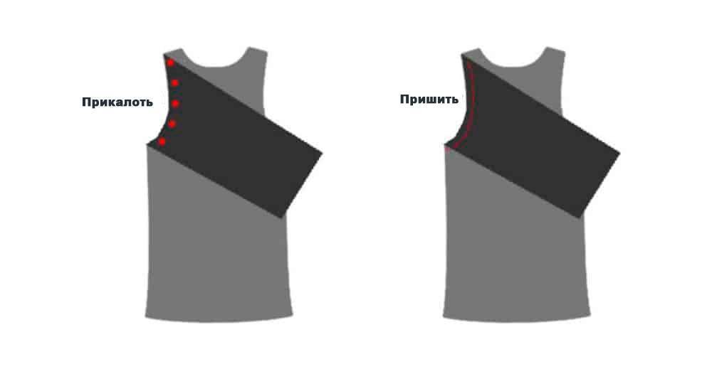 Выверните одежду без рукавов наизнанку и приколите край рукава к пройме. При этом убедитесь что рукав вывернут на лицевую сторону!
