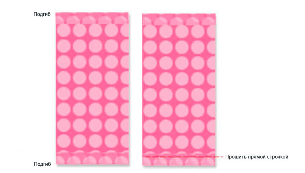 Подшиваем короткие стороны прямоугольников (подворачиваем на изнаночную сторону и прострачиваем прямой строчкой).