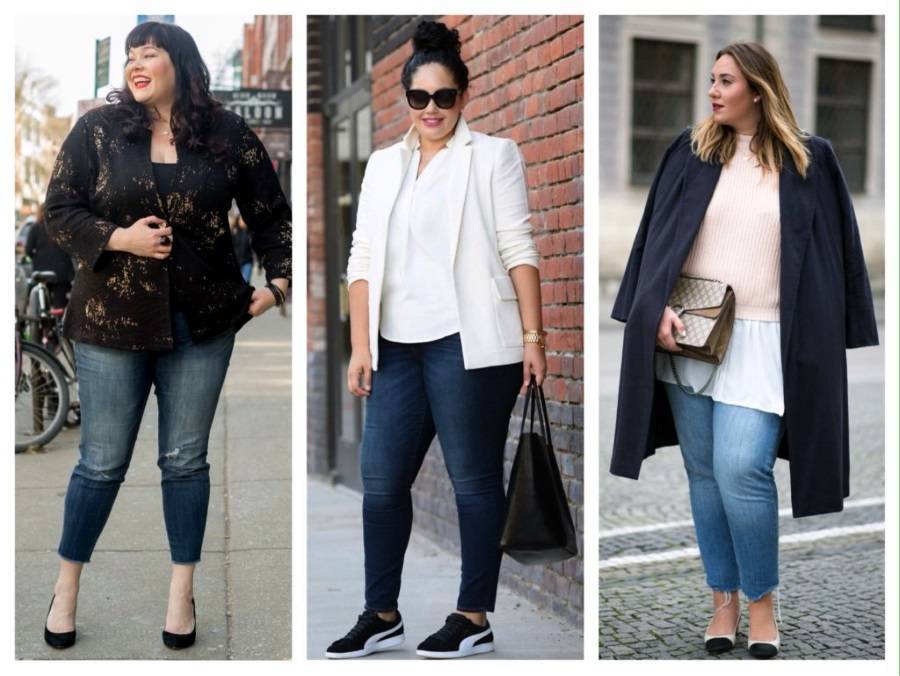Дизайнеры предлагают множество вариантов того, что можно носить полным женщинам с джинсами. Пышки стесняются примерить модные образы, считая, что на нестандартной фигуре красиво смотрится только просторная одежда. Мода развеивает этот миф, а стилисты предлагают составить интересные комбинации: