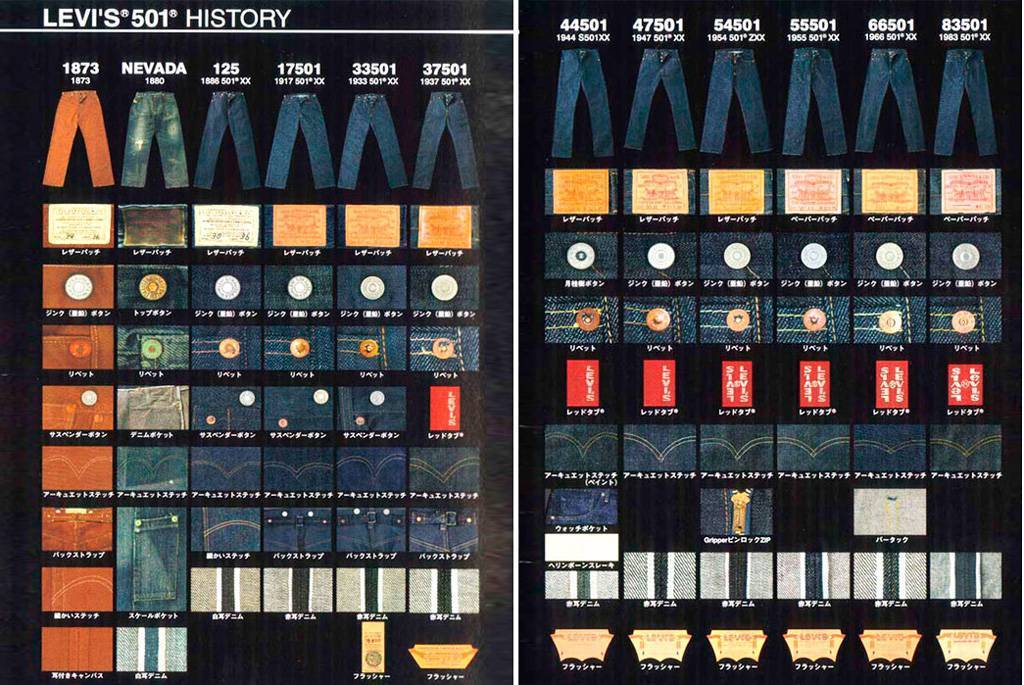 Джинсы Леви 501 изначально шились для горняков, фермеров и заводских рабочих, так как именно им требовалась прочная и долговечная одежда. В то время брюки в основном были коричневыми, а синяя ткань саржевого плетения под названием деним использовалась моряками для парусов и укрытия груза. Хлопковая ткань шилась из двух нитей: наружной, окрашенной в цвет индиго, и внутренней не окрашенной. От того материал приобретал такой необычный оттенок. Благодаря Леви Штрауссу синий деним спустился с кораблей на сушу и приобрел очертания знакомых всем нам джинсов.