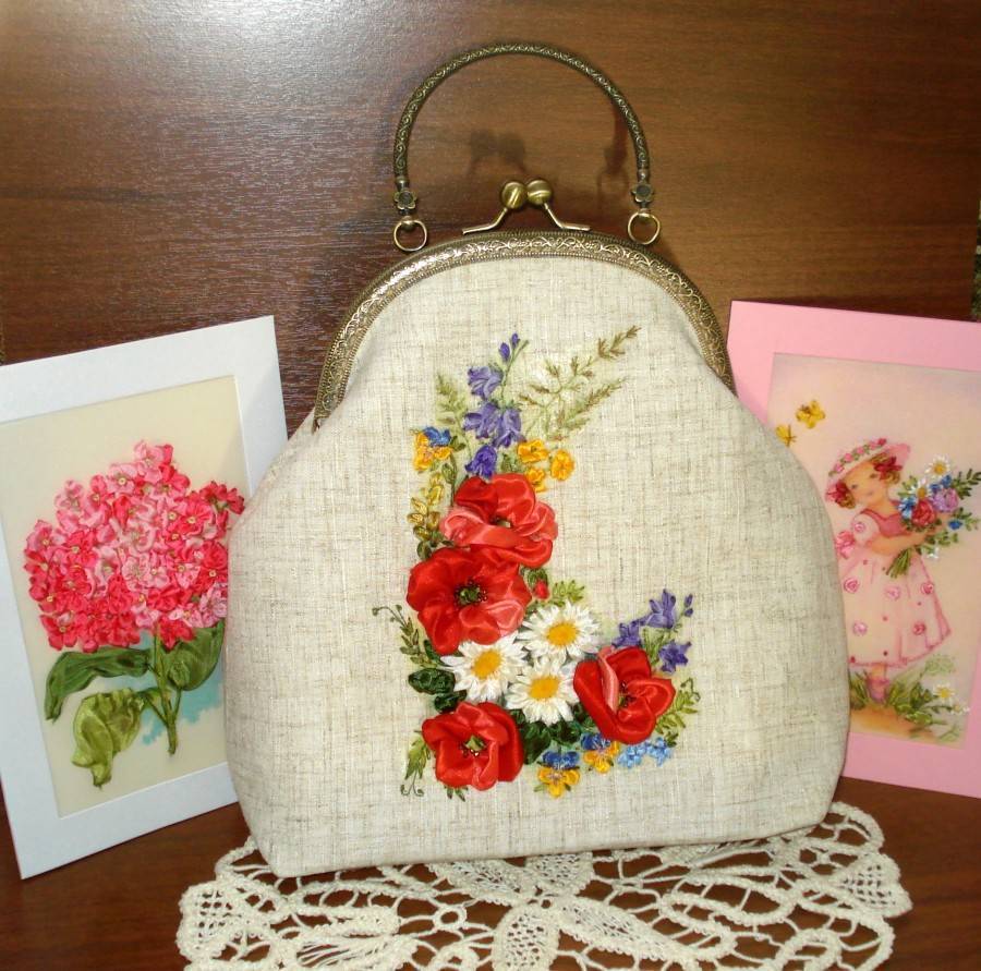Декорирование и отделка сумки. Декор может отличаться от дизайна модели и является воплощением собственных решений, которые позволяют украсить сумку необычными инсталляциями из бусин, тканевых цветов и бантов, специальных аксессуаров.