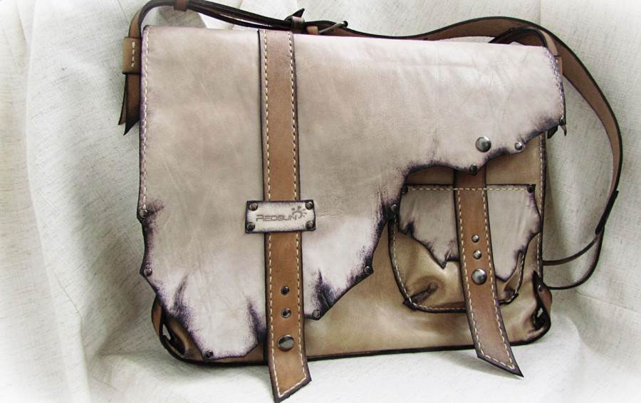 Сумка станет выглядеть оригинально и выразительно, если добавить элементы декора в виде нашивок из кожи или подвесок.