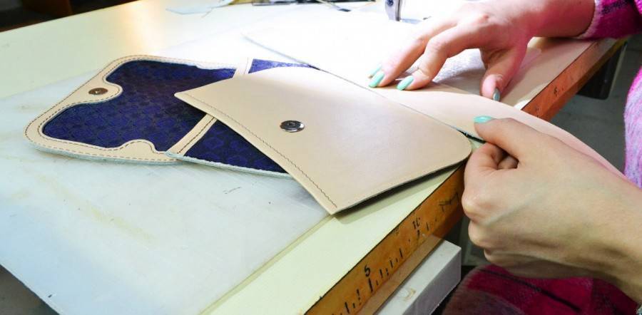 - Затем пришить с внутренней стороны две кожаные ручки.